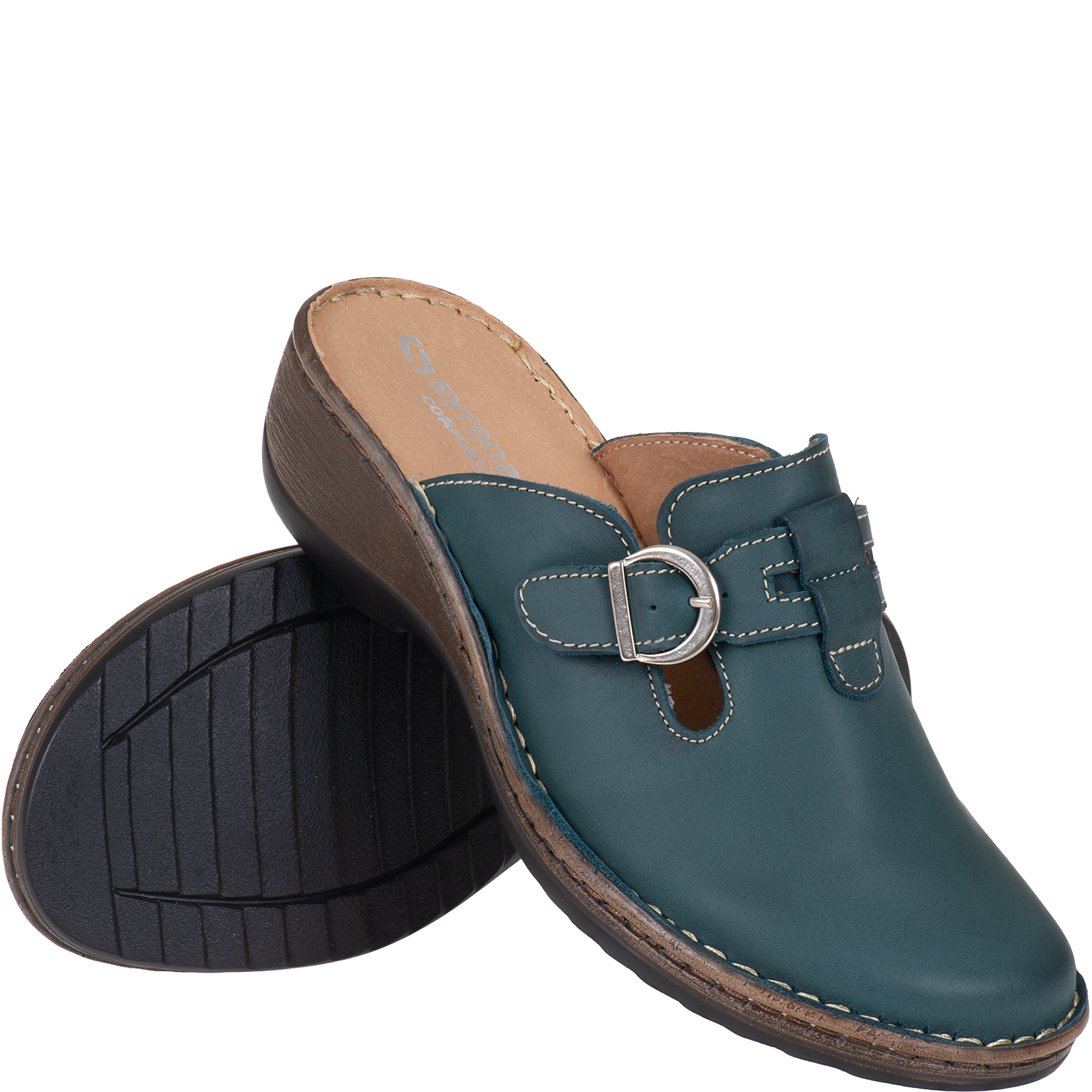 Klapki damskie skórzane z regulacją – Syrena SH 242 zielone