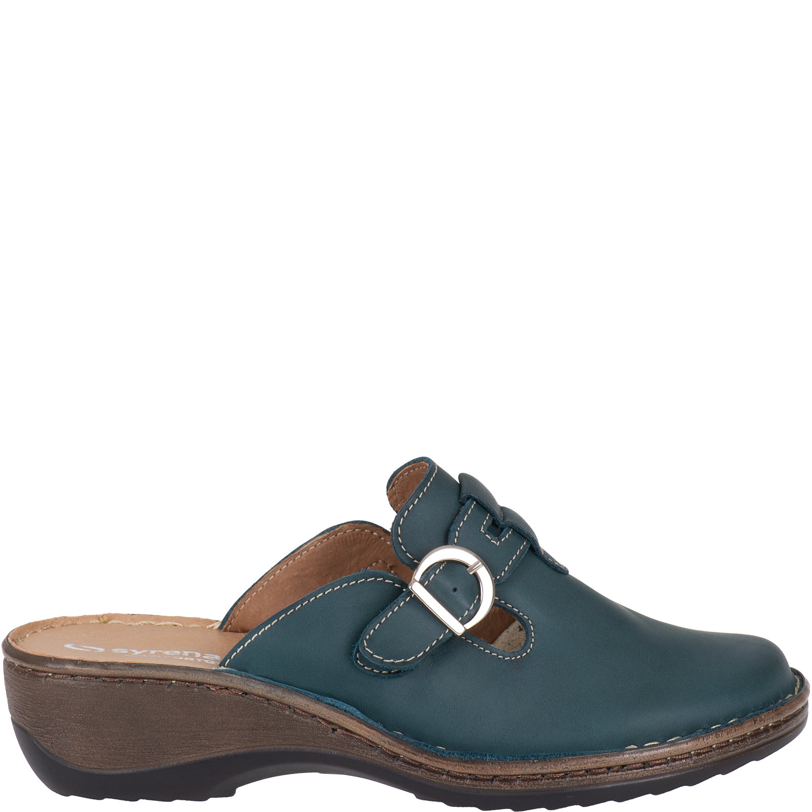 Zielone klapki skórzane damskie z klamrą - Syrena SH 242